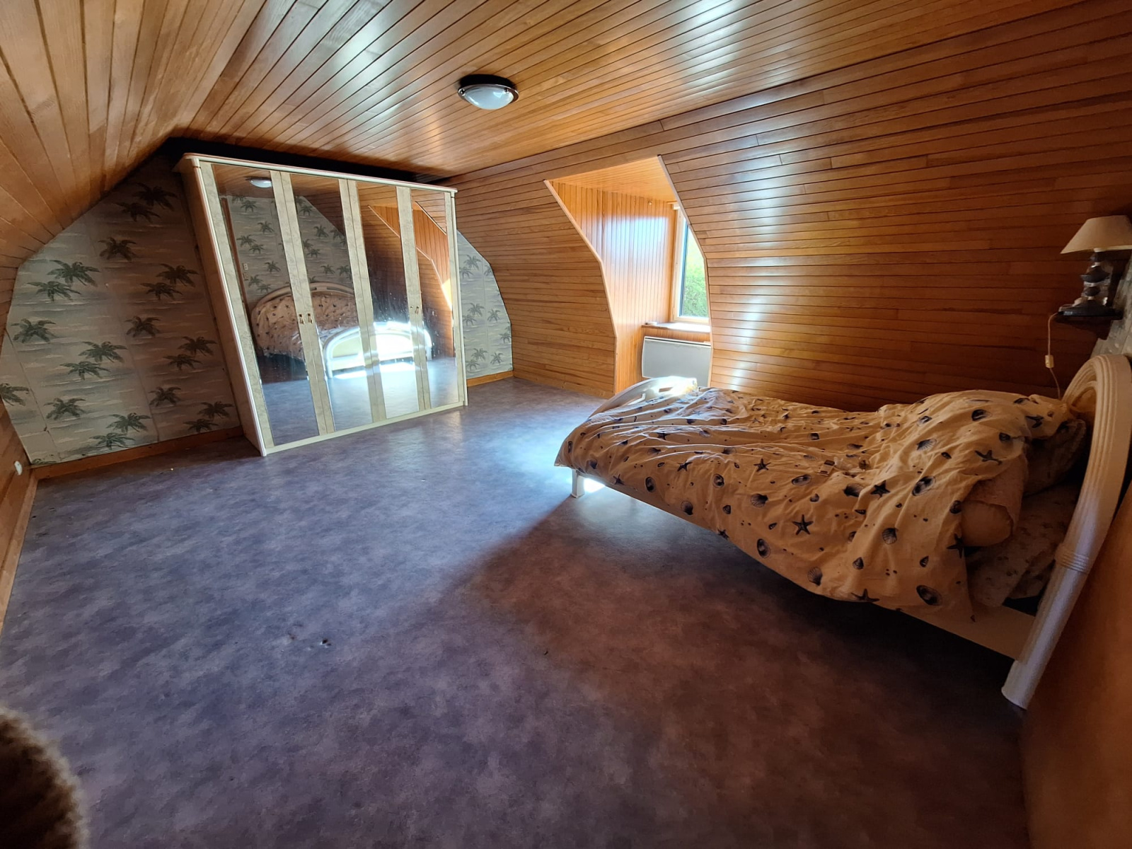 Composée d'un bel espace de vie avec cheminée ouvert sur cuisine aménagée et équipée, salle de bains