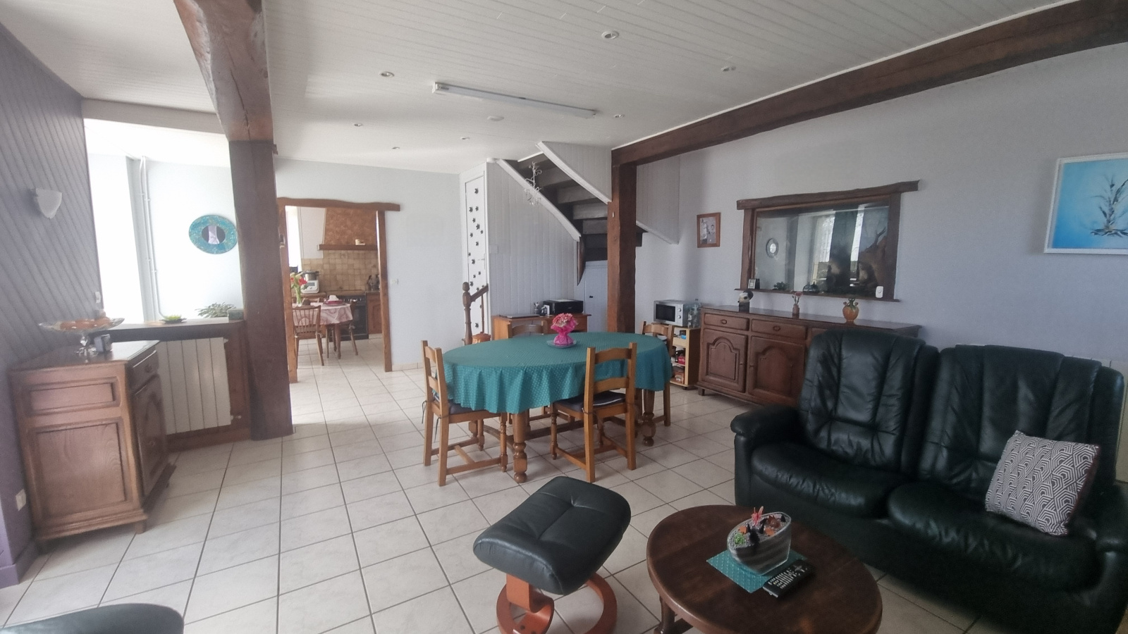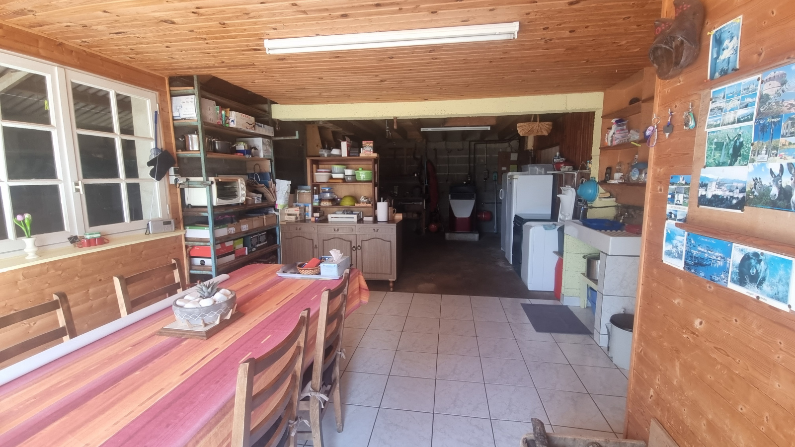 composée d'une cuisine aménagée et équipée, séjour d'environ 33 m² avec cheminée , salle d'eau , wc . et son arrière cuisine avec chaufferie d'environ 38m² (possibilité de faire une suite parental)